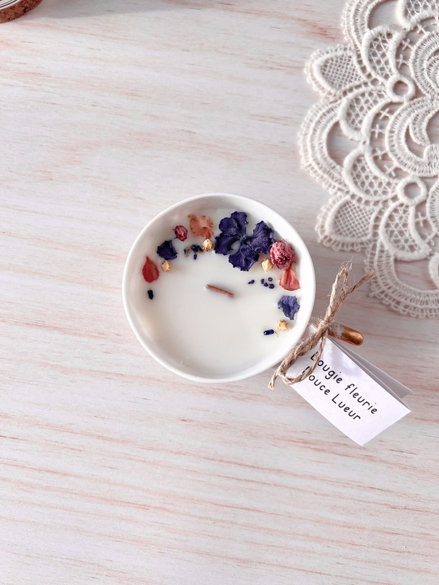 Profite de la senteur florale et poudrée de cette bougie au parfum Douce Lueur.