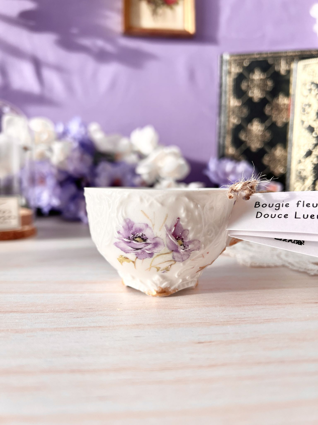 💜 Bougie Douce Lueur - tasse à café "pavots mauves et relief"