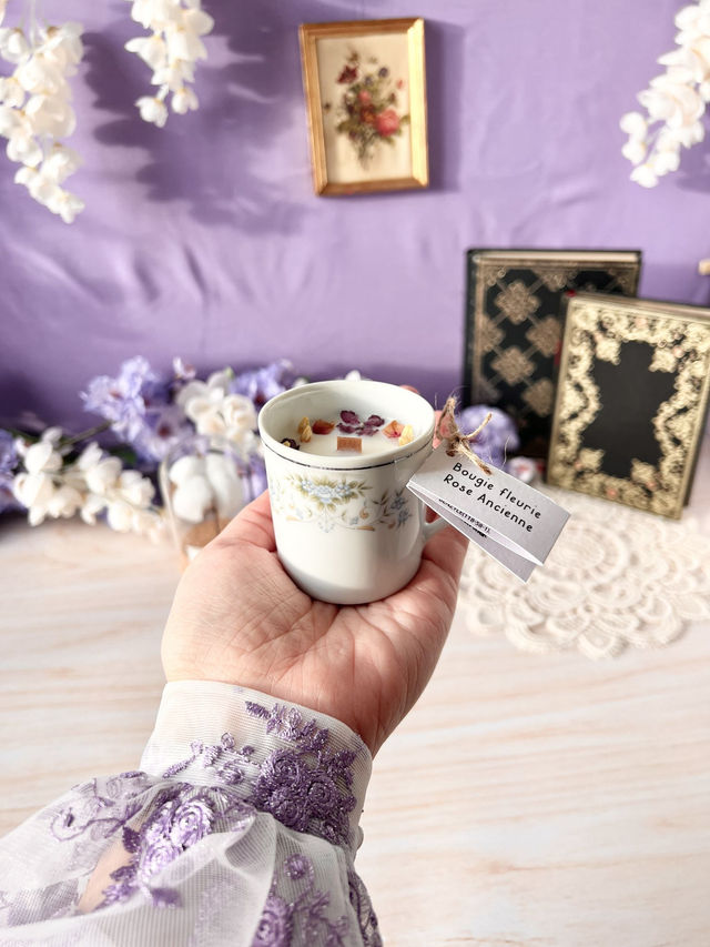 💜 Bougie Rose Ancienne - tasse à café "régence bleue"