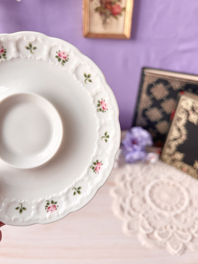 💜 Sous tasse - en porcelaine "roses et reliefs"