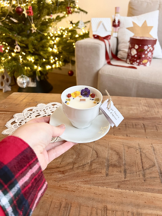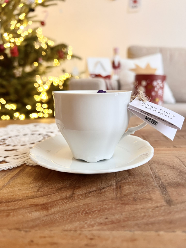 🎄 Bougie Pain d'épices - tasse à café "blanche" avec sous-tasse